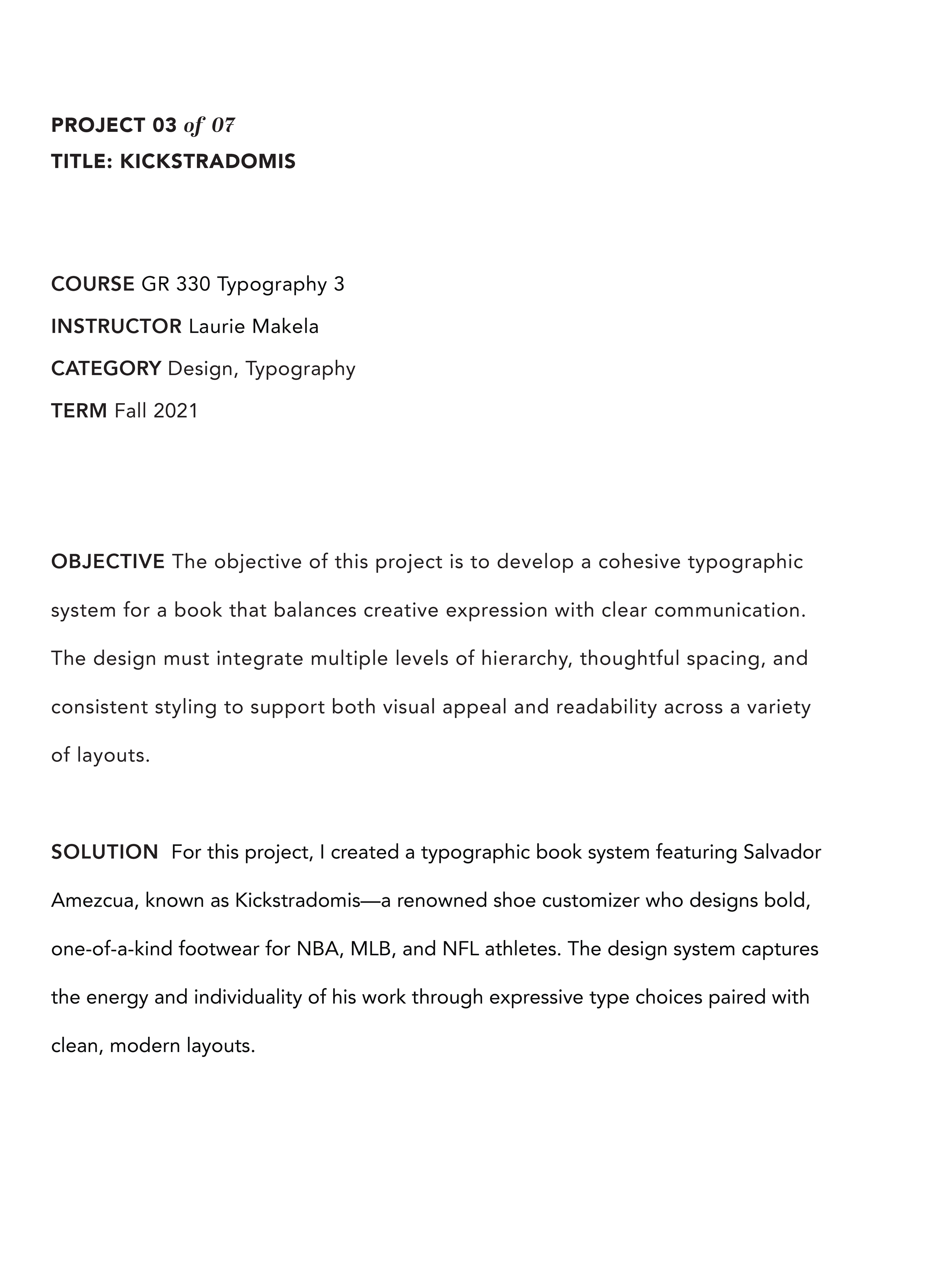 This portfolio brings together several years of study, experimentation, and growth. It highlights projects that explore identity, culture, and function, while always moving toward solutions that feel intentional and enduring.